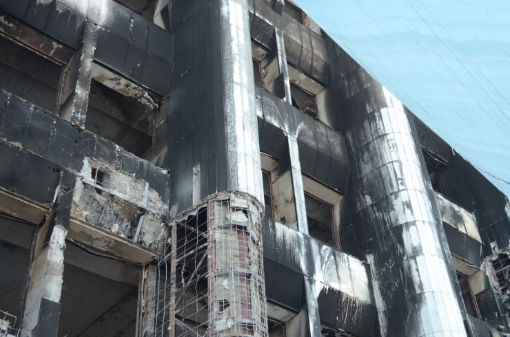 "Огрехи в здании были еще до пожара, так как оно строилось "с листа" и были отклонения от первоначального проекта в железобетонных конструкциях. Основным повреждениям из конструкций поверглись ригеля, несущие и ненесущие. Здание само по себе имеет железобетонной каркас. Несущие конструкции были обшиты отделкой и гипсом и меньше поверглись огню. Однако требуется провести сейсмоусиление с учетом действующих строительных норм. Фасад же подлежит замене, потому что через окна он подвергся огневому воздействию. Было нарушено сцепление между раствором и отделкой, и есть риск обрушения плит", - сообщил управляющий директор по производству АО "КазНИИСА" Ералы Шокбаров.