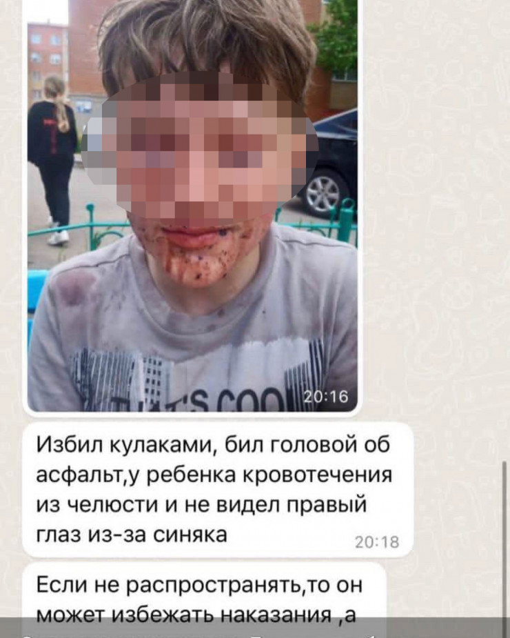 "Ребенка жестоко избил сосед на глазах у всех, ребенку выбил коренной зуб, у него сотрясение", - говорится в сообщении.