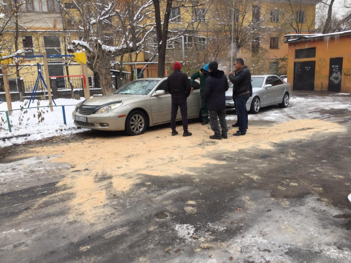 Lexus алматинца залили маслом на стоянке одного из дворов города, передает корреспондент Tengrinews.kz.