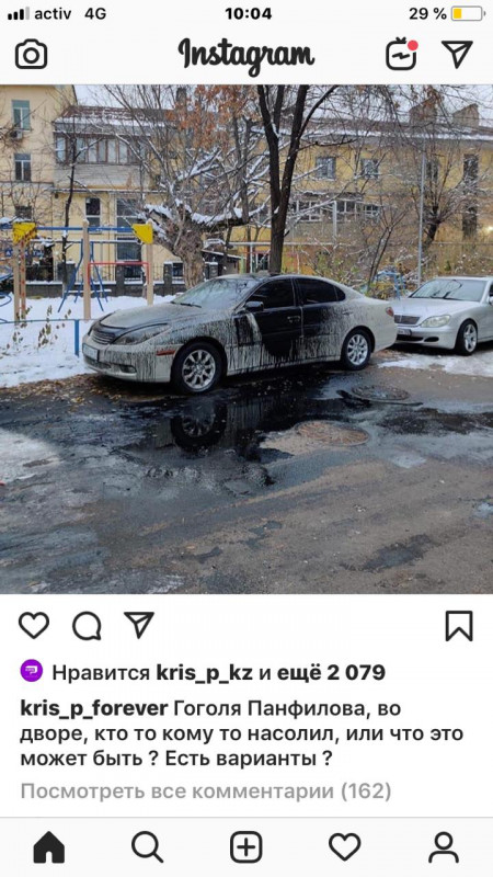 Фотографию с облитым черным маслом авто разместили в Instagram-паблике Kris_p_forever.