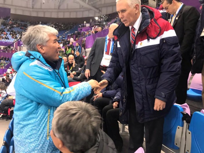 "Олимпиада в Пхенчхане стала приятной возможностью пообщаться с вице-президентом США Майклом Пенсом и Президентом Республики Корея Муном Чжэ Ином. Места Его превосходительства с супругой располагаются прямо позади моего и по соседству с местом Майкла Пенса. Вот в такой отличной компании мы болеем за наших спортсменов, друзья", - написал Арыстанбек Мухамедиулы на своей странице в Facebook.