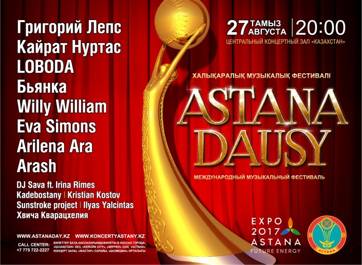 Впервые в Астане состоится церемония вручения статуэток исполнителям современной музыки. В первом ежегодном международном фестивале "Астана дауысы" примут участие самые топовые артисты года из 15 стран Европы и Азии. На одной сцене выступят артисты, задающие тренд в музыкальной индустрии, - Григорий Лепс, Светлана Лобода, Бьянка, Вилли Уильямс, Ильяс Ялчинташ, Arash, DJ Sava, Ева Симонс и другие. Казахстан на фестивале представит Кайрат Нуртас.