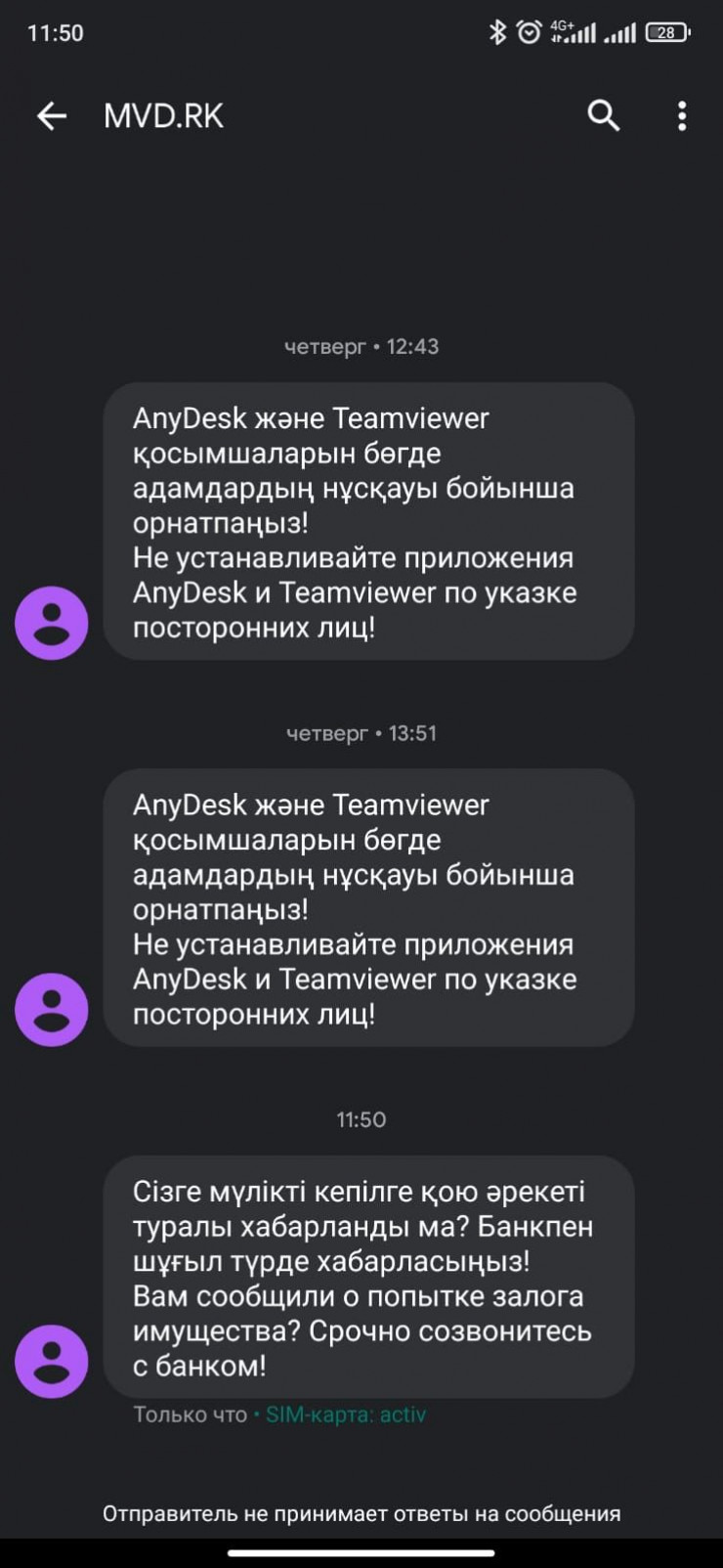 "Поскольку мобильная связь доступна почти каждому жителю Казахстана, вне зависимости от его места проживания и нахождения, передача информации об участившихся фактах мошенничества с помощью SMS позволит оперативно информировать широкий круг граждан", - объяснили в МВД.