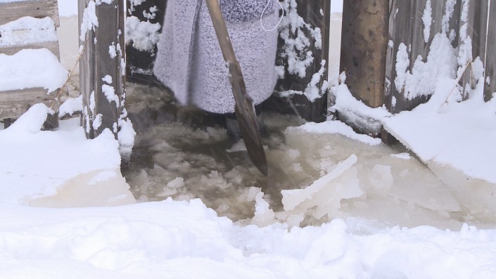 В следующий по улице дом хозяйка не может попасть несколько дней.  Дверь вмерзла в лед, который сковал весь двор. Дом Надежды Зубко находится в низине. Прошлые годы его тоже затапливало, поэтому в этом году к весне она начала готовиться еще осенью.