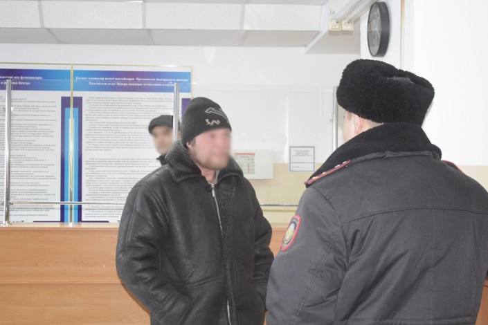 На первом этаже здания кипит работа. Сотрудник полиции пытается убедить недавно доставленного в центр мужчину, что находиться сейчас на улице небезопасно.