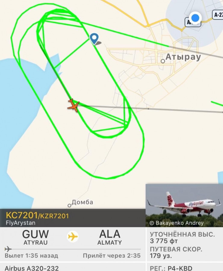 Как отмечает издание "Ак жайык", самолет около двух часов кружил над Атырау.
