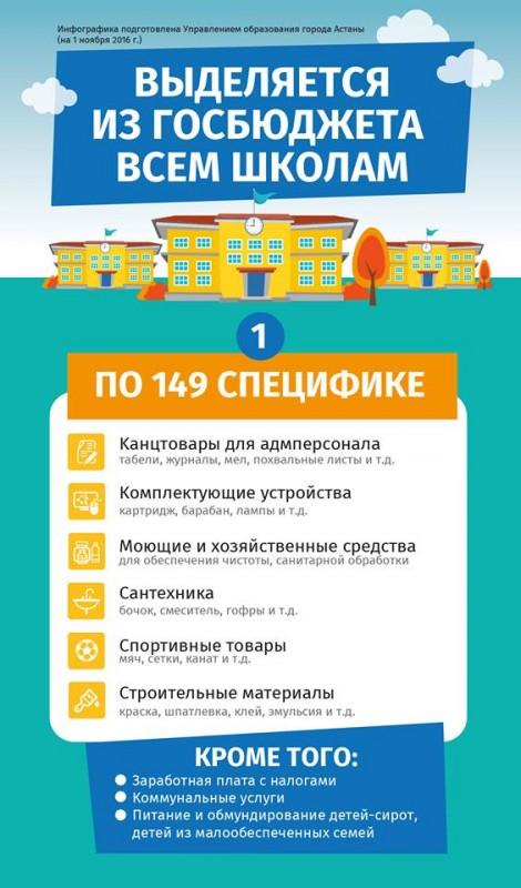 "Уважаемые родители! Ниже представлен список вещей и перечень услуг в школах, на которые выделяются денежные средства из государственного бюджета. Также прикрепляю копию приказа о запрете незаконного сбора денежных средств с родителей", - написала в Facebook пресс-секретарь Управления образования Астаны Жазира Асанова.