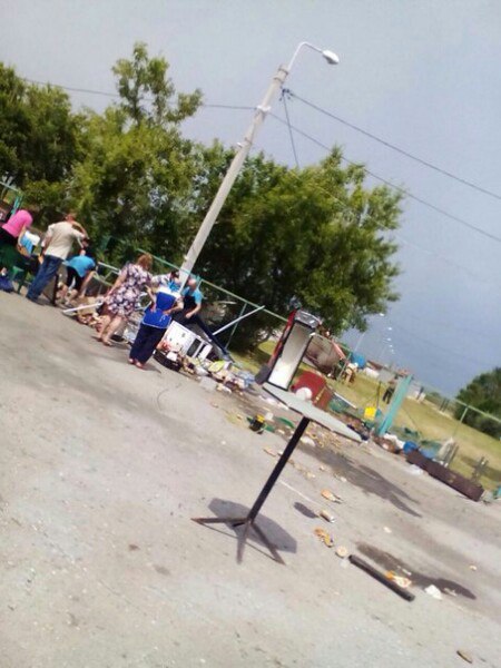 Непогода застала жителей села Сарыколь в первом часу дня во время районной спартакиады. Смерч обрушился прямо на стадион, где собралось много людей.
