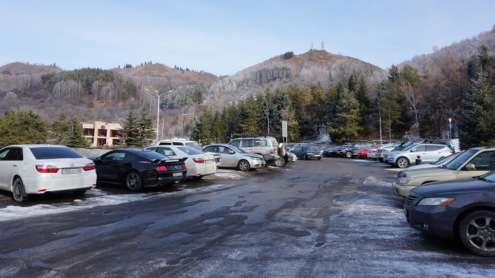 Есть вариант оставить автомобиль на парковке возле станции канатной дороги Медеу - Шымбулак. Это платная зона, стоимость - 500 тенге на целый день во все дни недели. Но здесь нужно учитывать, что расстояние от парковки до спорткомплекса составляет порядка 800 метров с ощутимым подъeмом и частичным отсутствием тротуаров. Этот путь нужно преодолеть пешком либо дождаться автобуса на расположенной неподалеку остановке.