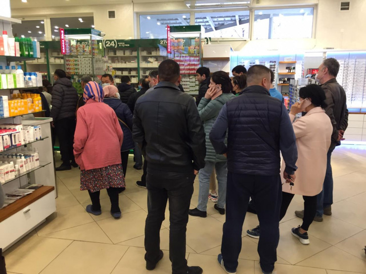 После информации о закрытии города на карантин количество посетителей аптек значительно увеличилось. Так, возле центральной аптеки на проспекте Назарбаева очередь наблюдается с утра.