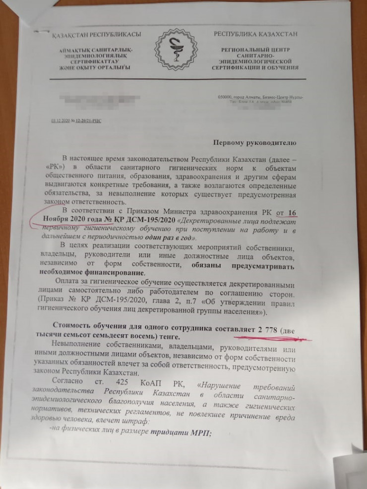 Заместитель руководителя Департамента санитарно-эпидемиологического контроля Алматы Асель Калыкова рассказала корреспонденту Tengrinews.kz, что учителя действительно обязаны проходить ежегодное гигиеническое обучение. Причем платят за него либо сами педагоги, либо школа, это зависит от политики каждого учебного заведения.
