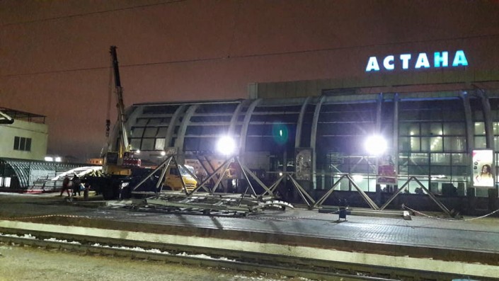 Как сообщает КТЖ Поддержка в комментариях к посту, в настоящее время ведется полный демонтаж навеса, расположенного на железнодорожном вокзале Астана.
