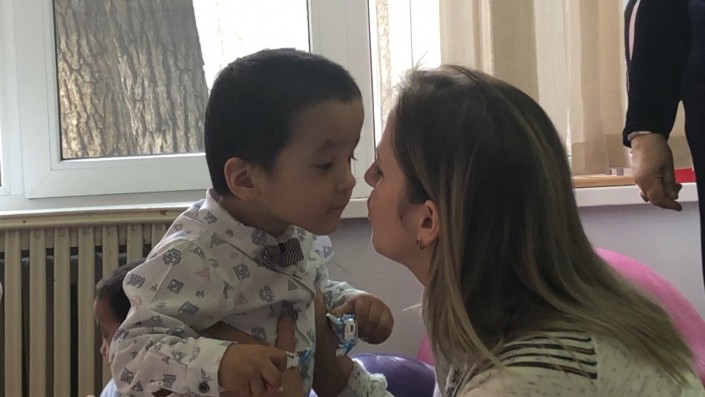 После курса лечения и реабилитации, к радости родителей и лечащих врачей, Муслим сделал свои первые самостоятельные шаги. В реабилитационном центре по казахским обычаям провели обряд "тусау кесу".