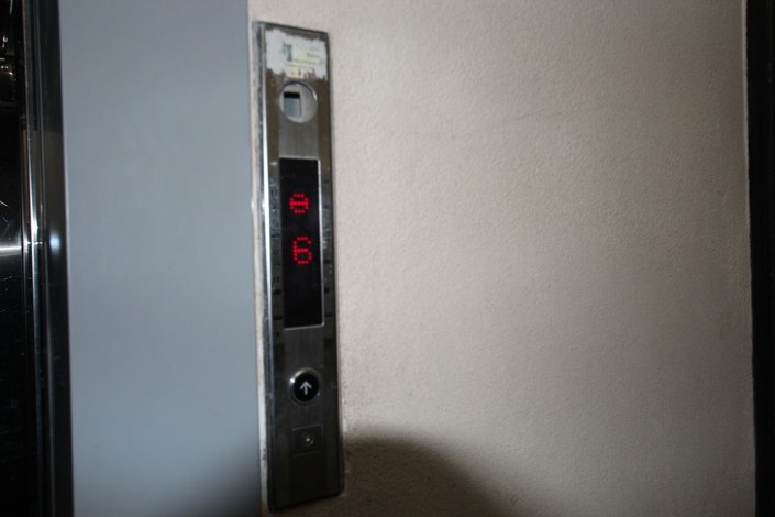 Табло лифта остановилось на 6-м этаже, откуда и началось падение. Двери этого лифта открыты, но он пока не работает. Фото Tengrinews.kz.