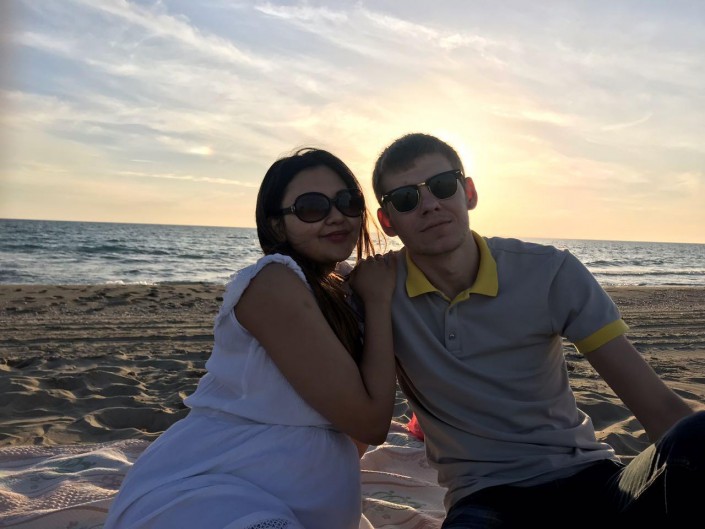 Мы познакомились в 2017 году. Я была ведущей YouTube-программы, он увидел выпуски и решил мне написать в Instagram. Так и началось наше общение, затем завязались отношения. Получилось, что именно в это время меня пригласили на работу в столицу. Я уехала, а Андрей остался в Актау. Мне было 18 лет, для меня это был серьезный шаг. Несмотря на расстояние, Андрей меня поддерживал на новом месте и не давал грустить.