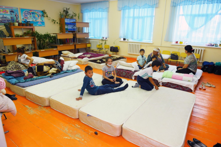 Другие же были поселены в школы, детсады, мечети и общежитие колледжа в поселке Атакент. Таких эвакуационных пунктов здесь 24. В них временно разместили около четырех тысяч человек. Один из таких пунктов развернули в общеобразовательной школе № 9.