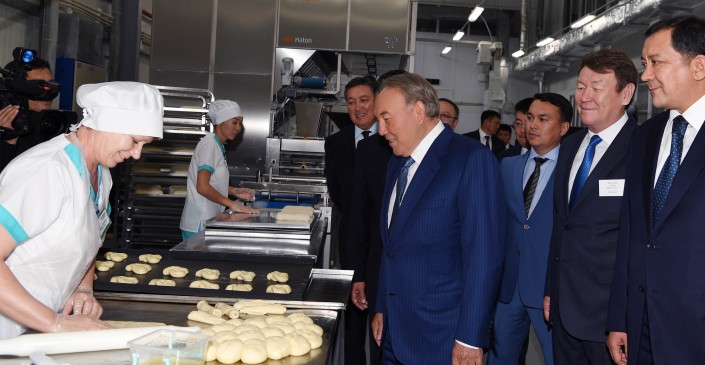 В ходе рабочей поездки в регион Нурсултан Назарбаев осмотрел цеха по изготовлению хлебобулочных и макаронных изделий, а также ознакомился с образцами готовой продукции местного производства.