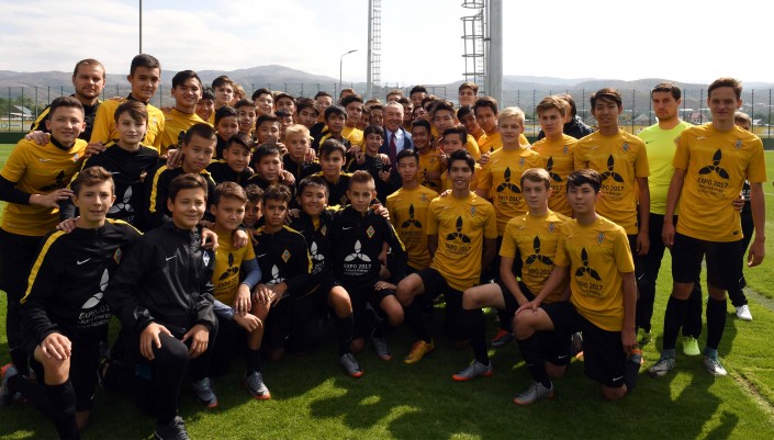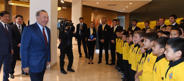 Нурсултан Назарбаев побеседовал и с юными спортсменами, обучающимися в академии футбольного клуба "Кайрат", поинтересовался их достижениями в спорте и учебе.