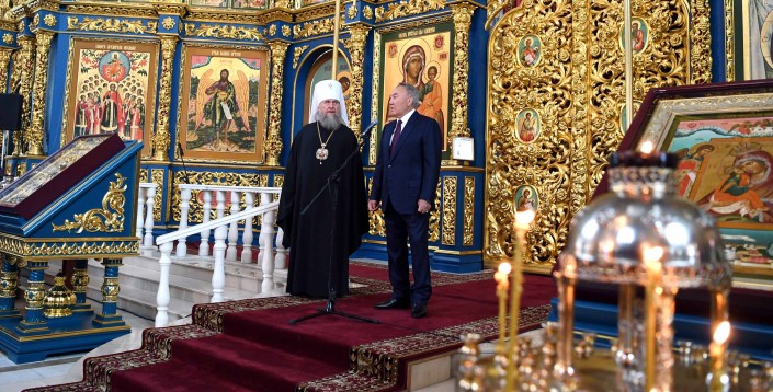Назарбаев посетил Свято-Успенский кафедральный собор, передает Tengrinews.kz со ссылкой на пресс-службу Акорды.