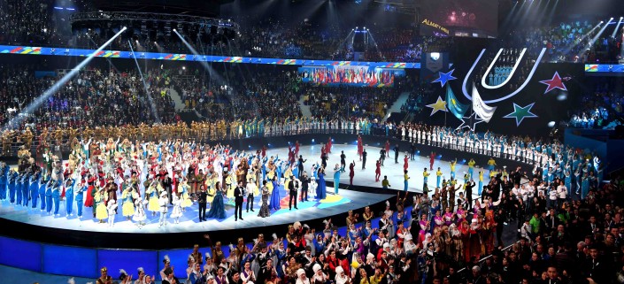 Официальная церемония открытия Универсиады транслируется в прямом эфире казахстанских телеканалов "Казахстан", "Хабар", и "Казспорт".
