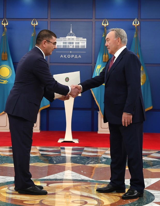"Поздравляю с началом новой дипломатической миссии в Казахстане. Ваша дипломатическая работа начинается в сложный и ответственный период. Казахстана в течение четверти века стал государством со сложившейся дипломатической системой, зрелым гражданским обществом и развитой экономикой. Основной целью всех наших начинаний является вхождение в число 30-ку самых развитых стран мира", - сказал Назарбаев во время торжественной церемонии.