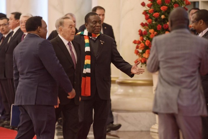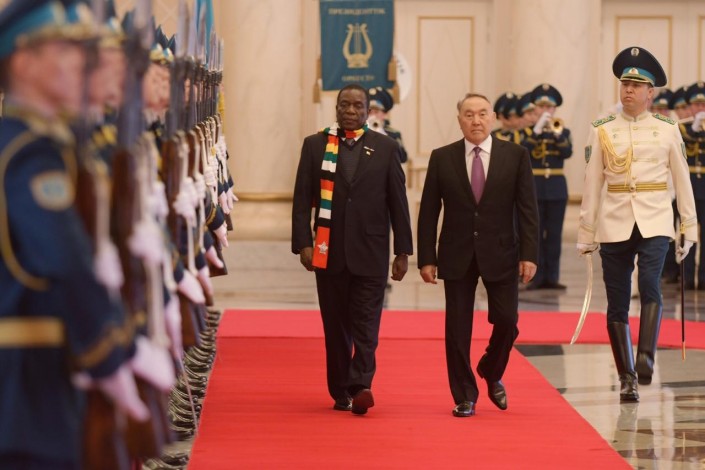 Главы государств проведут в Акорде двусторонние переговоры, после чего Нурсултан Назарбаев и Эммерсон Мнангагва выйдут к журналистам.