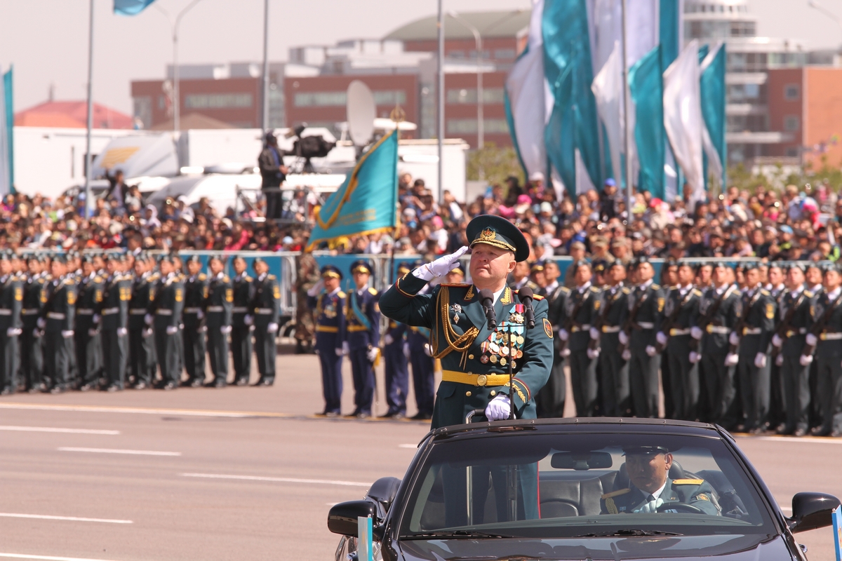 При этом Нурсултан Назарбаев подчеркнул, что Вооруженные силы страны, органы Национальной безопасности, внутренних дел, Службы государственной охраны, Национальной гвардии, Министерства по чрезвычайным ситуациям достойно выполняют все поставленные перед ними задачи. Отметим, в этом году парад проходил с участием нового министра обороны Казахстана Серика Ахметова. Руководил парадом Главнокомандующий Сухопутными войсками Вооруженных Сил республики генерал-лейтенант Мурат Майкеев.