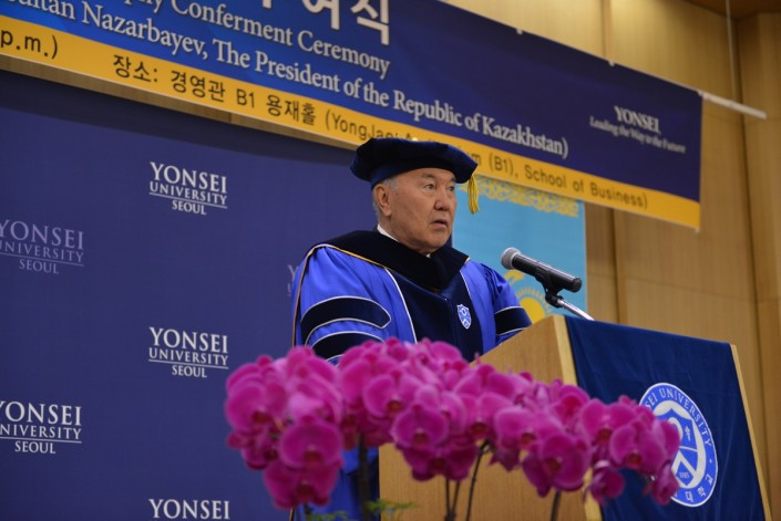 "Хотел бы выразить свою искреннюю благодарность за присуждение мне звания почетного доктора философских наук одного из самых авторитетных старейших высших учебных заведений Кореи", - сказал Президент Казахстана.