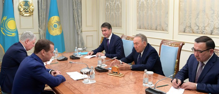 Президент Нурсултан Назарбаев встретился в Астане с председателем правительства России Дмитрием Медведевым и обсудил ключевые аспекты сотрудничества между двумя странами, передает Tengrinews.kz со ссылкой на пресс-службу Акорды.