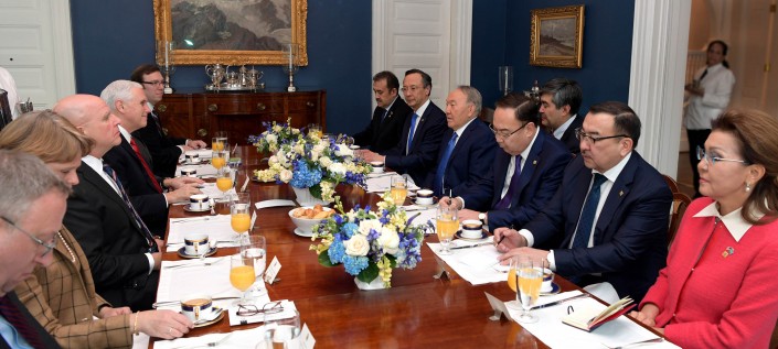 Президент Казахстана Нурсултан Назарбаев в Вашингтоне встретился с вице-президентом США Майклом Пенсом, передает корреспондент Tengrinews.kz со ссылкой на пресс-службу Акорды.