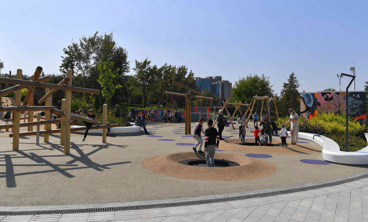 Обновленная территория визуально поделена на несколько зон: детскую и культурно-развлекательную.