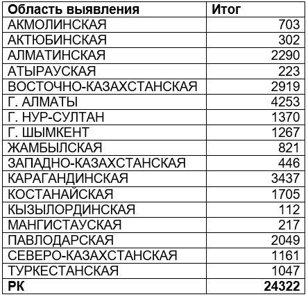 Согласно статистическим данным, за девять месяцев этого года в Казахстане из 24 322 людей, живущих с ВИЧ, наибольшее количество сосредоточено в Алматы - 4253 человека, в Карагандинской области - 3437 человек, в Восточно-Казахстанской области - 2919 человек с ВИЧ.