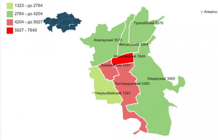 Далее наиболее опасными признаны Ауэзовский район с 5 565 фактами и Бостандыкский район с показателем 5 245 правонарушений с начала года.