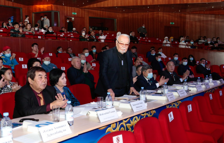 В этот же вечер 16 акынов - виртуозов айтыса были награждены нагрудным знаком "Мәдениет саласының үздігі", награды вручала министр культуры и спорта Актоты Раимкулова.