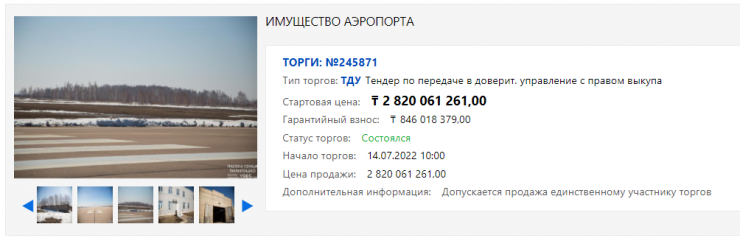 Неизвестный покупатель приобрел на аукционе аэропорт Петропавловска
