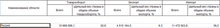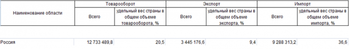 Товарооборот с Россией в 2016 году
