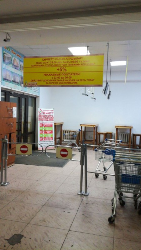 Читатели портала прислали в редакцию фотографии вывески, установленной в одном из супермаркетов столицы. Она предупреждает покупателей о том, что с 23.00 до 6.00 действует пятипроцентная наценка на весь товар за ночное обслуживание.