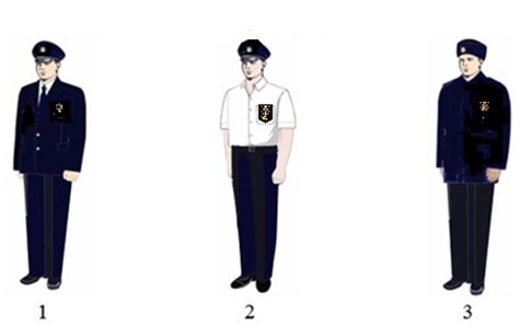 Образцы мужской форменной одежды. 1 - повседневная форма; 2 - летняя форма; 3 - зимняя форма.