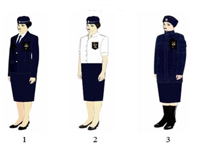 Образцы женской форменной одежды. 1 - повседневная форма; 2 - летняя форма; 3 - зимняя форма.