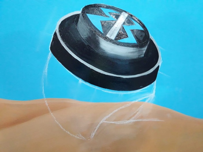 Девушки рисуют в казахском стиле с элементами сюрреализма. К примеру, на одной картине изображены огромные браслеты и крошечные люди.