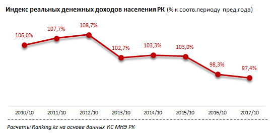 Также уточняется, что за аналогичный период прошлого года покупательная способность зарплат и иных доходов казахстанцев сократилась на 1,7 процента.