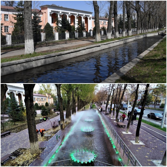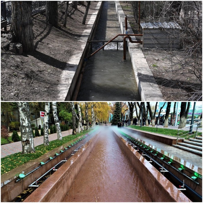 Построен фонтан между Национальной библиотекой и улицей Байсеитовой. Отремонтирован неработавший фонтан перед Государственным академическим русским драматическим театром имени Лермонтова.