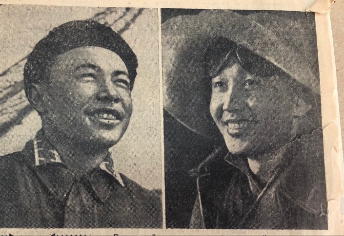 И конечно же, рассказывали о людях. На снимке ниже (слева) - работник Каратауского горнохимического комбината, помощник машиниста экскаватора, справа - рабочий Иртышского медеплавильного завода.