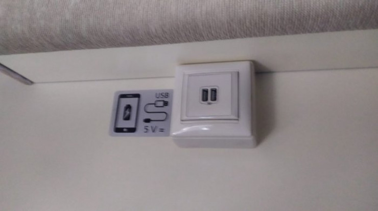 В купе и коридорах установлены по две электрические розетки напряжением 220 В и по два современных USB-порта для зарядки мобильных телефонов. Также в каждом вагоне имеется холодильник, микроволновая печь, диспенсер c питьевой и титан с горячей водой. В купе есть телевизоры.