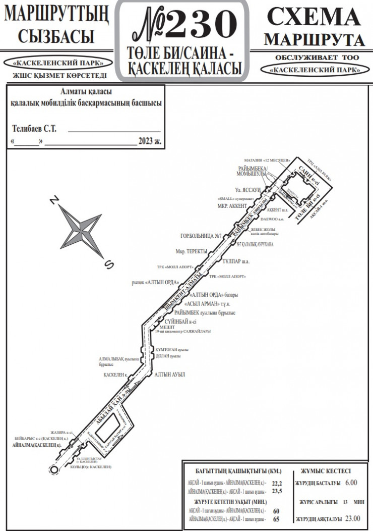 По информации ведомства, с 10 февраля будет запущен новый маршрут № 230. Он будет начинать движение от остановочного пункта микрорайон Аксай-1, далее по улице Толе би - улице Момышулы - проспекту Райымбека - трассе Шымкент/Алматы - проспекту Абылай хана до города Каскелена, осуществит разворот на кольце и будет двигаться в обратном направлении.