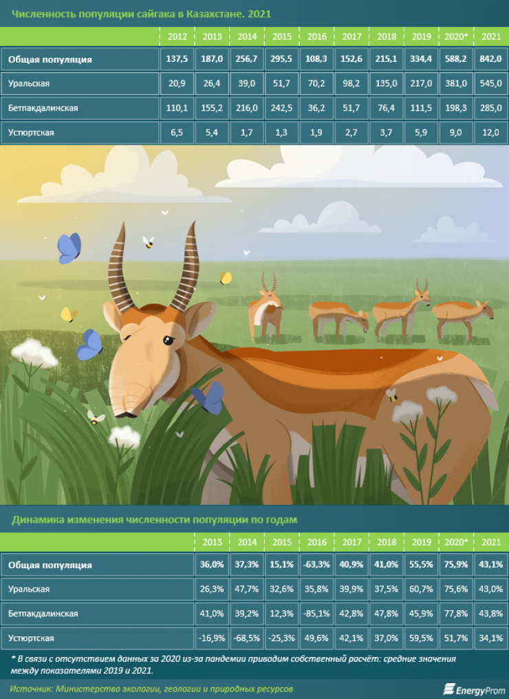 "Рост популяции сайгаков может оправдывать растущие расходы бюджета на обеспечение биоразнообразия, включая сохранение и развитие охраняемых видов животных, но, судя по дискуссии, у представителей экспертного сообщества ситуация вызывает определенные сомнения. За 2016–2020 годы рост затрат по отдельным направлениям составил от 2 до 70 раз. Если исходить из заявленных Министерством экологии, геологии и природных ресурсов тенденций роста популяции, уже в 2022 году показатель может значительно превысить миллион голов. А это в свою очередь несет как риски для сельского хозяйства, так и опасность повторного массового падежа сайгака по уже озвученным причинам, что, опять же, повлечет как экономические, так и репутационные риски для Казахстана", - отмечается в публикации.