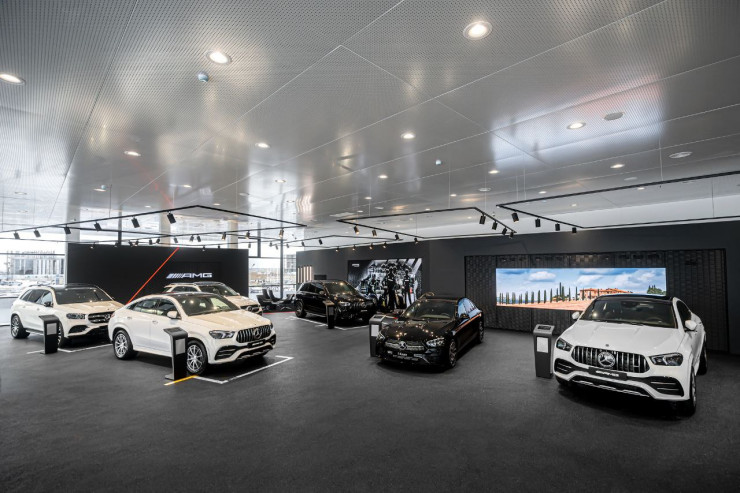 На втором этаже автоцентра находится спортивное подразделение Mercedes-Benz AMG. Это первый AMG перформанс-центр в Центральной Азии. Здесь клиент сможет услышать звучание двигателей AMG разных моделей.