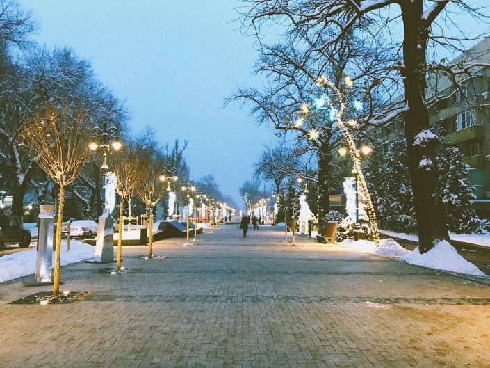 "Вечерний город - очень красивый. Повсюду гирлянды, лампочки, освещение, люди улыбаются и только редкие прохожие (как я) ходят и фотографируют улицу, двери и даже стены. Лет десять назад вечером и ночью в городе было не так весело. Стоило прогуляться, как тут же: "Эй, брат, слышь?" Тогда любая вечерняя прогулка могла обернуться "веселыми" приключениями. Город - это ведь не только улицы, скамейки и бетонные коробки, а прежде всего люди! И если город красив, значит, это люди такие! И душой, и телом", - говорит он.