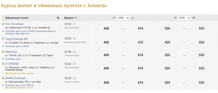 Евро в обменниках Алматы по 532 тенге, в обменных пунктах Нур-Султана - 530.