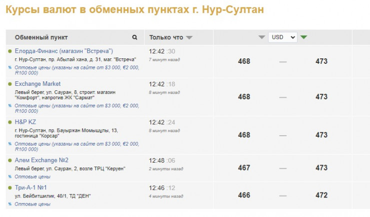 В обменниках Нур-Султана курс продажи достиг 473 тенге, покупки - 468 тенге.